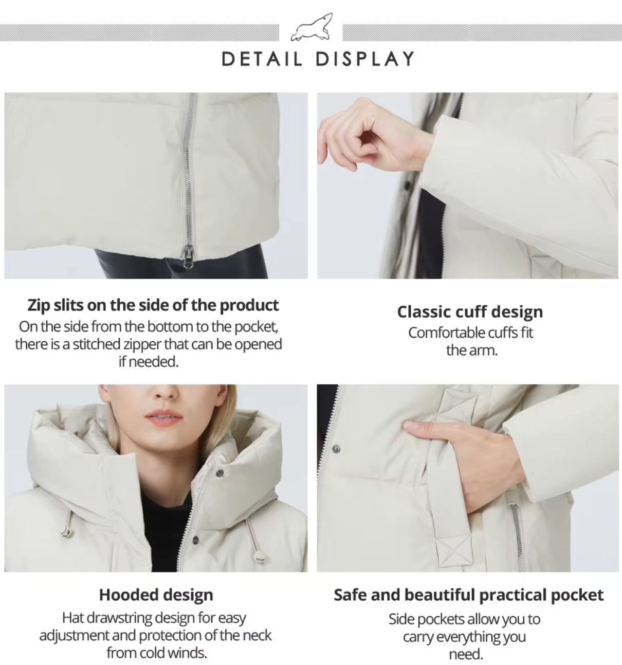 Doudoune Longue Femme Hiver ICEbear – Chaude, Épaisse, avec Grandes Poches et Capuche